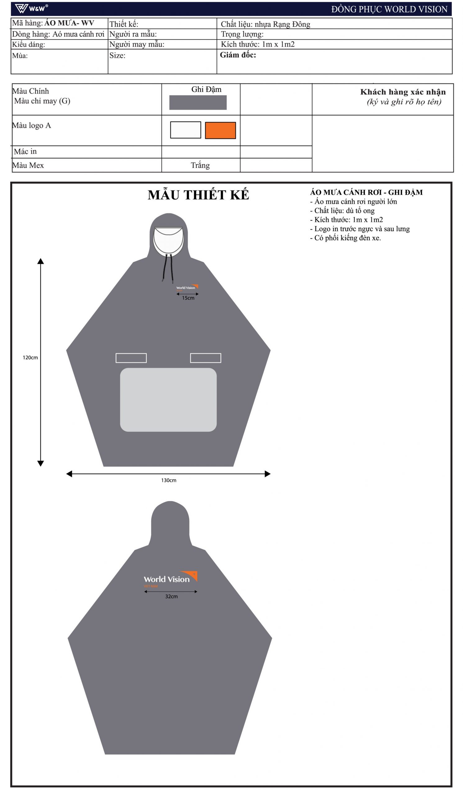 – In logo World Vision Vietnam in trước ngực và sau lưng